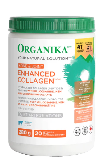 Repair, restore, rebuild. Organika's Enhanced Collagen™ fortified with glucosamine, MSM, chondroitin, and other nutrients such as vitamin D3 and K2 to provide a blend that gives special attention to aching bones and joints. This synergistic blend of ingredients is helpful for supporting a healthy frame as you age, move and slow down joint wear and tear.