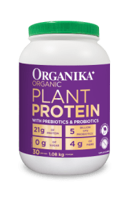 Get a nutrition boost with Organika's Organic Plant Protein with Prebiotics & Probiotics. Made from organic pea and rice protein, fibre, iron, and probiotics, it supports muscle growth, digestion, and immune health. This flavourless protein powder is versatile and sugar free.